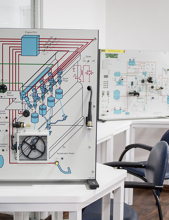 Los simuladores de autotrónica permiten al estudiante practicar en el diagnóstico avanzado de fallas en el vehículo incluso sobre uno real.